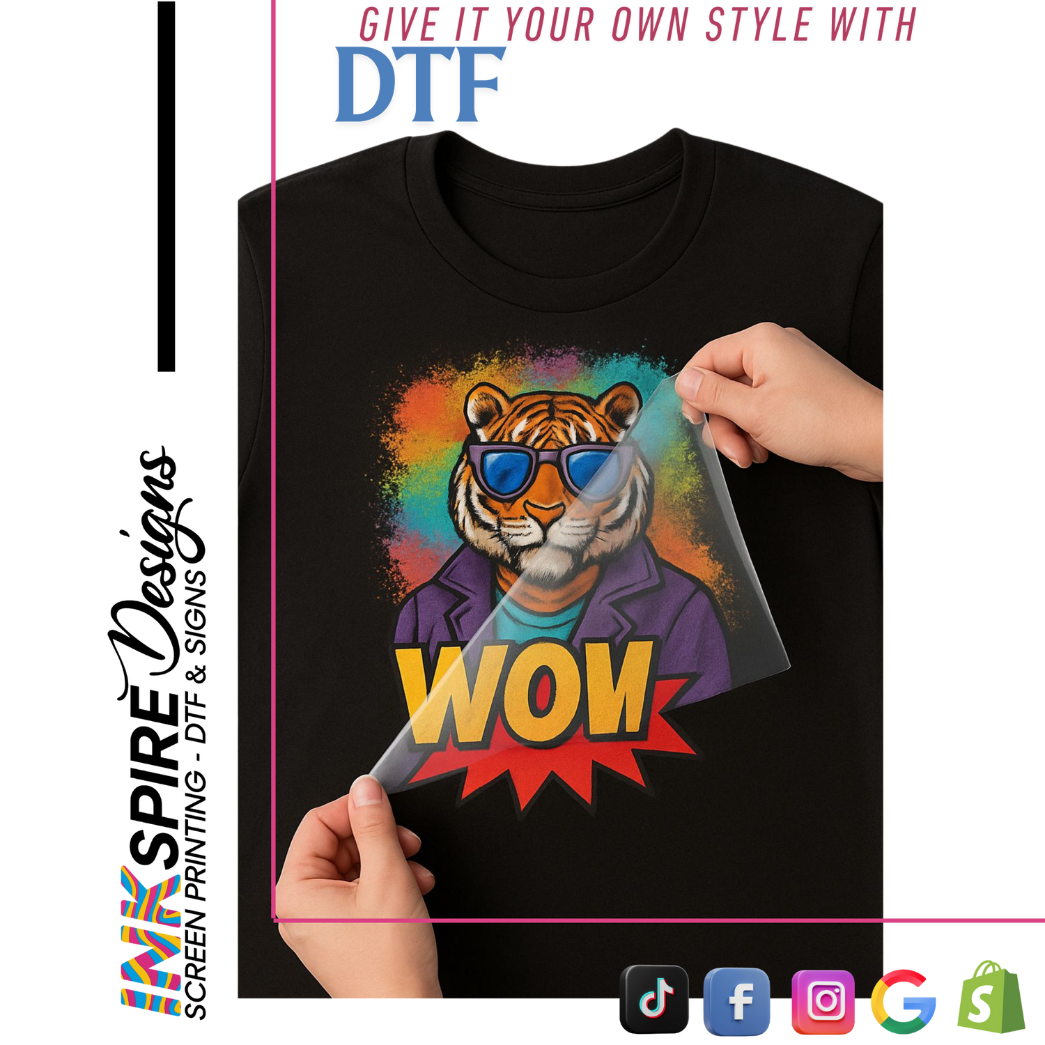 DTF (Direct-to-Film) is a cutting-edge printing method that transfers vibrant, long-lasting designs onto almost any fabric. The process is simple — print, press, and peel — no weeding, no pretreatment, and perfect results every time.