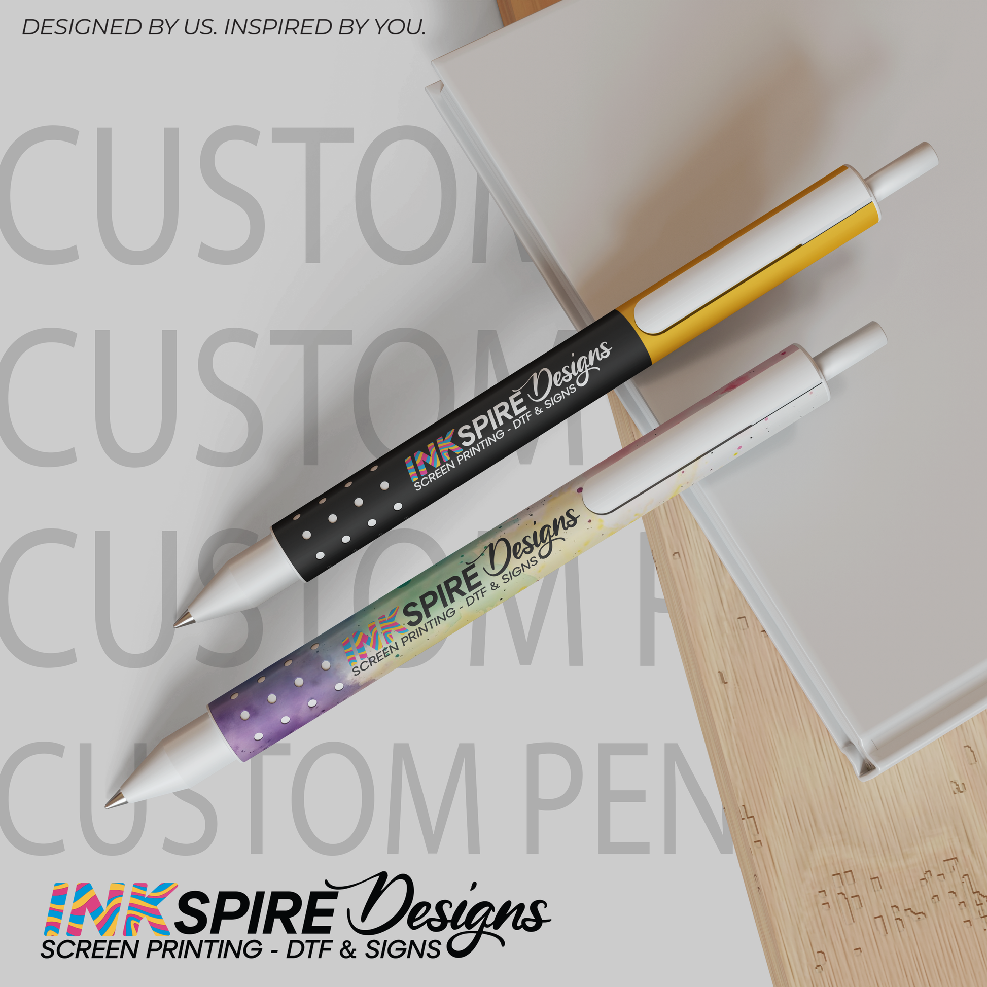 Explore our collection of custom pens, perfect for branding, events, or personal use. Choose from a variety of styles and colors, and personalize them with names, logos, or messages to make them truly yours.